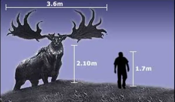 9- Ciervo gigante o alce irlandes (Megaloceros giganteus). Extinguido hace 7700 años.