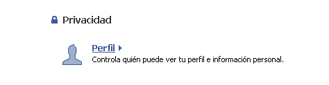 2. Una vez que se carga la página de Privacidad, haz click en la opción Perfil (la primera que aparece en la lista).