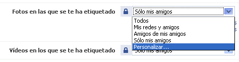 3. En la página que se carga de nombre Privacidad > Perfil, busca por la opción “Fotos en las que se te ha etiquetado” y despliega el menú, allí haz click en “Personalizar…”