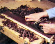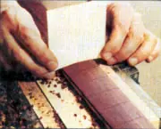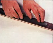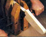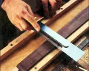 2. Use un cepillo de mano bien afilado y que esté delicadamente ajustado para unir y darle un grueso de 0.64 cm (1/4" ) al diapasón. Fije en su lugar el trabajo con gancho largo de banco.