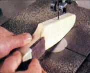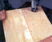 10. Una vez que ya haya trazado la forma del cuerpo y la línea central en una pieza de madera de tilo americano, recorte por la parte exterior de la línea usando para ello una sierra de banda.