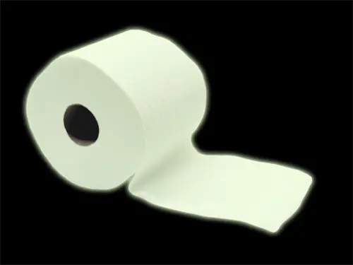 Aunque no se aprecie demasiado bien en la imagen, se trata de un rollo de papel higiénico que brilla en la oscuridad. Así que, con este invento, irse de camping y pasar la noche a la intemperie será mucho más fácil para todos.