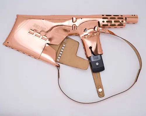 The Pursuader es un bolso, del diseñador James Piatt, con forma de rifle automático. Está fabricado en piel y casi a tamaño real, ya que mide algo más de medio metro de largo, lo que hace de él un bolso bastante incómodo de llevar.