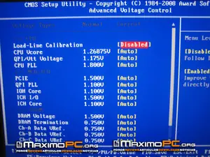 Por último se ubican las opciones de voltajes e los componentes principales que a priori parecen ser pocas. Cuando entramos al modo avanzado la lista de voltajes se vuelve sumamente completa que sumando la calidad del producto (en cuanto a su construcción) y refrigeración podemos aumentarlos, ideal para entusiastas del OC que quieren llevar a la arquitectura X58 al "extremo".