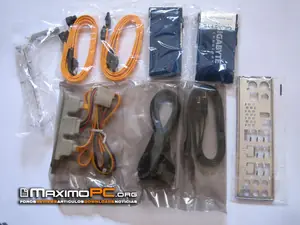 El packaging es bastante completo donde incorpora el manual de usuario y guía rápida, cd con drivers y software, puentes para SLI y 3-way SLI, cables Floppy e IDE, placa de metal de E/S, un PCI bracket eSATA y por supuesto los cables SATA correspondientes y SATA a eSATA.