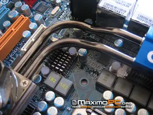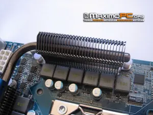 Para mejorar considerablemente la refrigeración que se origina desde el SB, el NB hacia los mosfets presenta no solo un heatpipe de cobre sino ¡dos! lo cual eleva su efectividad en forma notoria.