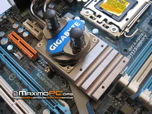 El calor acumulado (transportado por los heatpipes) finalmente se expulsa por la parte trasera del bracket sin afectar el interior del sistema cumpliendo así su objetivo. Básicamente lo que trata de hacer Gigabyte es remover el calor que ronda por las zonas del CPU, NB y SB de una manera rápida sin afectar la funcionalidad.