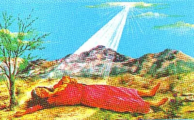 -Su figura esquelética que representa la similitud con todos los seres humanos, y que esta libre y desarraigado de todo pecado.