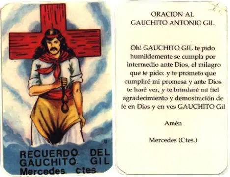 El Gauchito Gil es una figura religiosa popular en Argentina, un santo adoptado, aunque no reconocido por la Iglesia Católica. Su nombre completo es Antonio Mamerto Gil Núñez y presuntamente nació en el área del Pay Ubre o Payubre, actualmente Mercedes, Provincia de Corrientes, posiblemente alrededor de 1840, y murió el 8 de enero 1878.