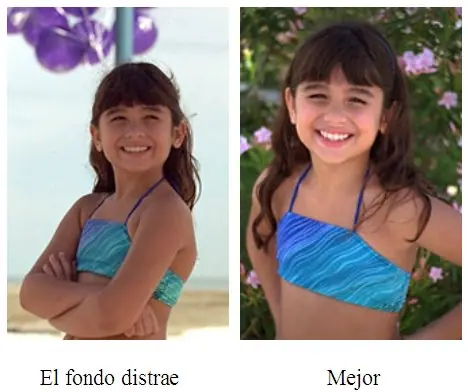 Un fondo sencillo resalta al modelo que estás fotografiando. Cuando miras por el visor de la cámara, fuérzate a estudiar el área que rodea al sujeto. Asegúrate de que no hay palos creciendo de la cabeza de tu sobrina favorita y de que ningún coche parezca colgar de sus orejas.