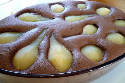 De pera y chocolate (reemplazar la mitad de la harina por cacao amargo)