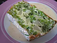 De arvejas (guisantes), papas, zanahorias hervidas y coboulette