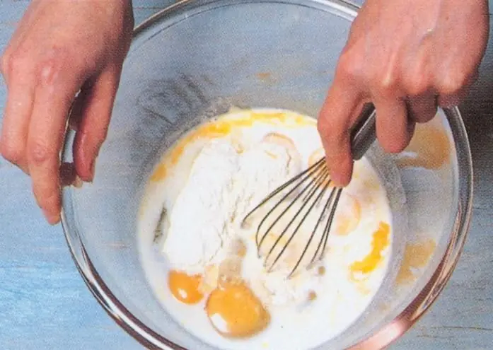4. Añadir la leche y seguir batiendo unos instantes.