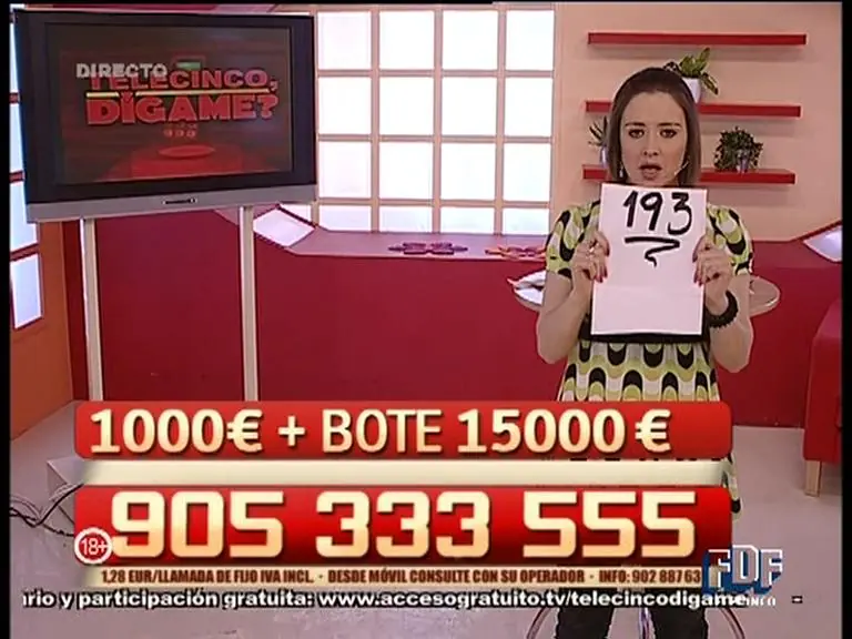 Como había explicado en mi post anterior los participantes tienen que llamar por teléfono al número que aparece en pantalla, acertar con varias preguntas y luego ellos le llaman y le consultan cual es la respuesta al acertijo que aparece en pantalla.
