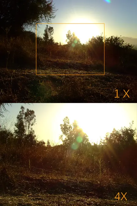 Al darse cuenta del descontento ofrecido por el zoom digital muchos fabricantes empezaron a ofrecer algo llamado “zoom inteligente” que promete un mayor nivel de zoom sin pérdida de calidad, pero solamente funciona si utilizas una resolución menor a la máxima de la cámara. ¿Cómo funciona? La magia detrás de esto es simple: Recortan la imagen. Así es, al capturar por ejemplo una imagen en 12 megapixeles (4000×3000) podemos tener una imagen a 2 megapixeles (1600×1200) con un “aumento” de 2.5X.