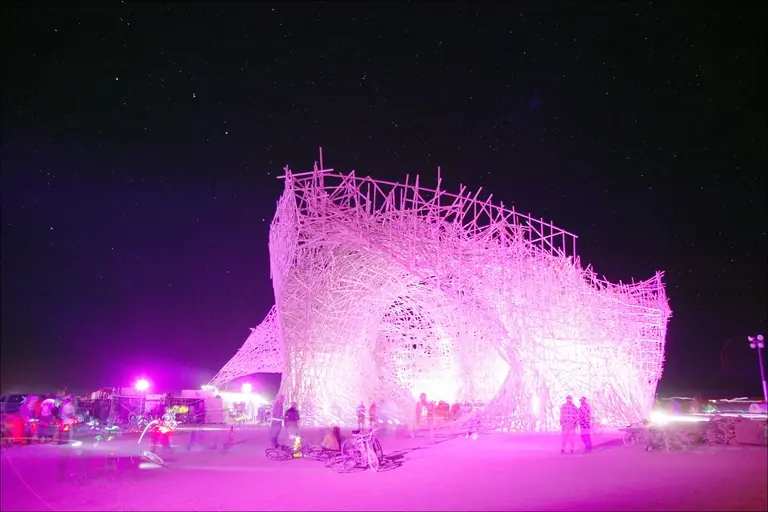 UCHRONIA, una experiencia creativa en la que participaron 43 personas de diferentes profesiones durante 4 semanas en el Desierto Black Rock en Nevada en EEUU. Sobre la planicie del desierto crearon e instalaron una gigantesca escultura de madera orgánicamente dispuesta con el objetivo práctico de materializar una utopía: la promesa de generar un cambio radical en el pensamiento del mundo. Esta escultura estuvo llamada a simbolizar un puente entre el hombre y la naturaleza, un refugio para los sentimientos y una razón para descubrir la esencia de la vida.