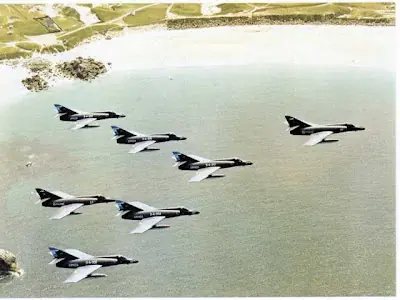 La pequeña formación de IAI Dagger –la versión israelí del Mirage III- atravesó sin demasiadas dificultades las áreas de nubes y chubascos que se interpusieron en la ruta de aproximación final a su objetivo, los buques británicos en aguas del estrecho de San Carlos. Los tres monoplazas, equipados para el largo vuelo con depósitos subalares de 1700 litros y dos bombas de 454 Kg., habían despegado con otra sección desde la base área de San Julián a las 13,45. Era el día 21 de mayo de 1982 y, en el amanecer, las tropas británicas habían iniciado el desembarco en la isla Soledad.