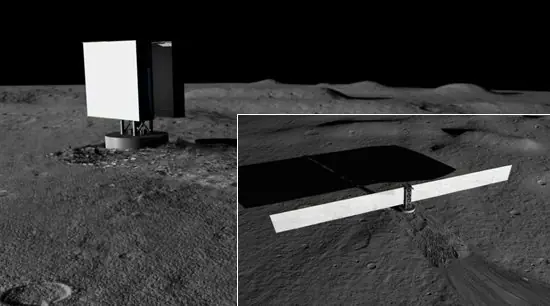 Concepto artístico de un sistema de Energía por Fisión en Superficie en funcionamiento en la superficie de la Luna.