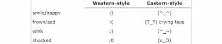 4. Emoticonos orientales y occidentales, diferentes: también hay diferencias entre los emoticonos de oriente y occidente, y no sólo en que los segundos se pueden leer de lado, sino también en su forma.