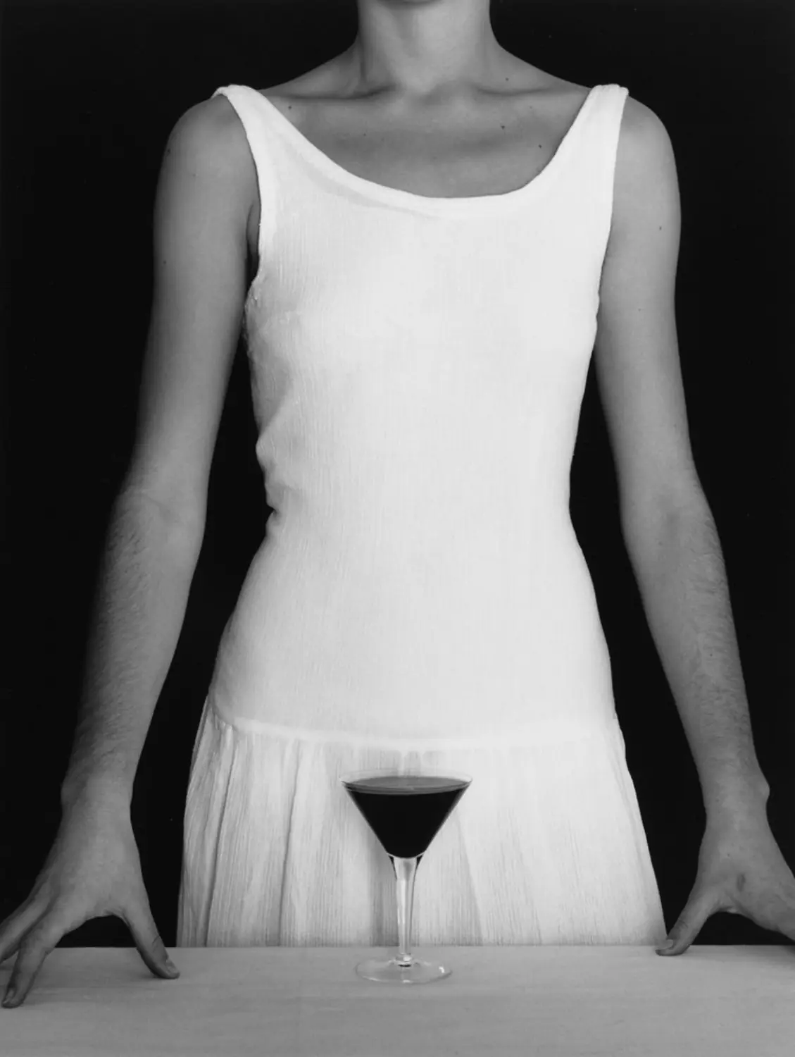 Ella tiende a inclinarse sobre su copa, acercándose hacia sus pares para hablar confidencialmente.