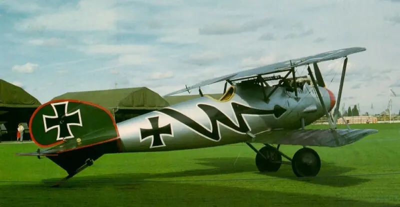 Esta foto pertenece a un Albatros DVa alemán. Tiene un fuselaje extremadamente aerodinámico, y sus dos ametralladoras fijas sobre el capó le proporcionan una buena potencia de fuego. Lo volaron muchos ases alemanes, incluido el Barón Rojo.