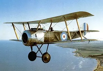 El caza británico Sopwith Pup fue uno de los primeros biplanos. Tiene una estructura de madera con cables de refuerzo, recubierta de tela. Monta un ligero motor rotatotio y su único armamento es una ametralladora Vickers sobre el capó.