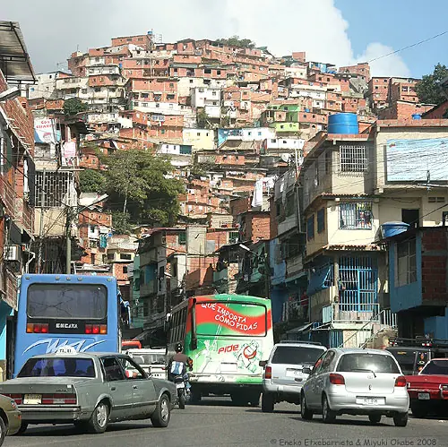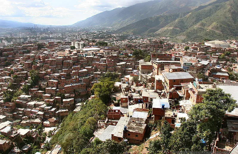 "Esto que se extiende delante de nosotros es Petare, una ciudad que ya ha sido absorbida por Caracas. En la actualidad, está formada por más de 2.000 "barrios" [sinónimo de favela en Venezuela] en los que viven en difíciles condiciones más de un millón y medio de personas."