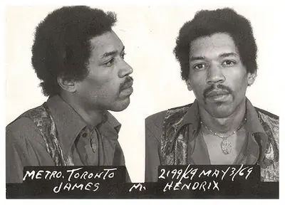 En Mayo de 1969, Jimi Hendrix fue detenido en el aeropuerto de Toronto por llevar heroína oculta en el estuche de una guitarra. Iba acompañado de una mujer rubia teñida, que trabajaba en un bar de la ciudad de México y que, a propósito de casi nada y con varias botellas entre pecho, espalda y guitarra, había sido invitada por el guitarrista a su siguiente concierto en Toronto. Jimi cargaba dos guitarras en sus estuches e iba seguido por la rubia que arrastra dos maletas. Cuando llegaron a la mesa de revisión, el revisor ya había pedido refuerzos de manera disimulada, tal vez por el aspecto del artista.