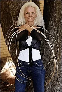 La estadounidense Lee Redmond, quien hasta esta semana ostentaba el record Guinness de las uñas más largas del mundo, vio cómo un trabajo de 30 años se hizo añicos (en sentido literal) por un accidente de tráfico.