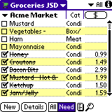 Adiós a las notas en la puerta de la nevera: con HandyShopper, el mejor lugar para la lista de la compra es su PDA. El programa permite introducir de una vez por todas cada uno de los productos que adquirimos, indicando en qué establecimientos está disponible y a qué precio. Al cabo de unos días de uso, uno puede organizarse sus expediciones al supermercado, pues el programa muestra las diferencias de precio, calcula el coste estimado de la compra según las cantidades a adquirir, e incluso sugiere un trayecto si hemos indicado en qué pasillo se encuentra cada producto. Sirve para verificar en caja que el importe y las cantidades son correctas, y nos informa de lo que tenemos pendiente de comprar. Al confirmar el paso por caja, las cantidades se ponen a cero y la lista queda dispuesta para la próxima visita a la despensa.
