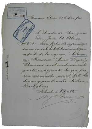 La llegada de inmigrantes a la Argentina, desde fines del siglo XIX, consignó dos tipos de registros oficiales: libros de desembarco y expedientes, a partir de los cuales se elaboraron oficialmente las estadísticas, proyecciones y estrategias de las sucesivas políticas migratorias durante el período de la inmigración masiva.