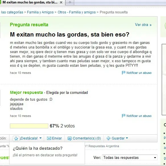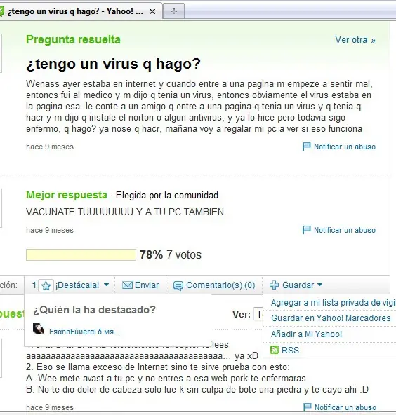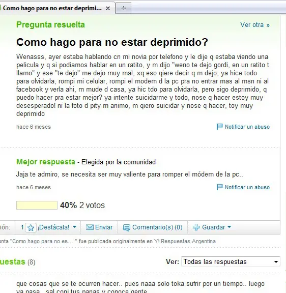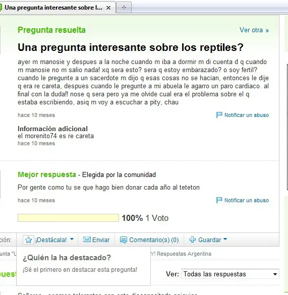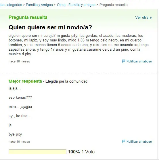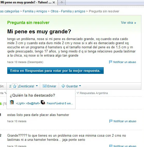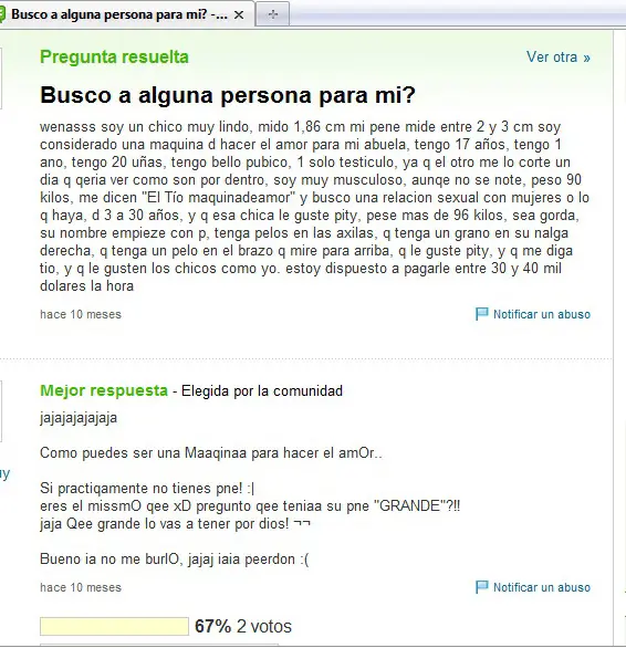 Jajajajajajaja, yo estoy en la comunidad de yahoo respuestas y si es cierto que la mayoria son vulgares y graciosas esta da risa