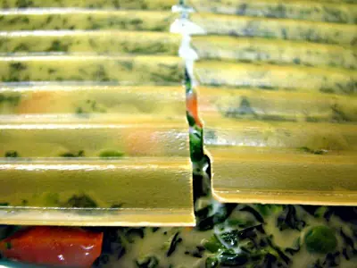 Hoy les dejo una receta fácil y original, es invento mío y se prepara con masa seca instantánea para lasaña, salsa de tomate, queso y masa bomba con verdura (soufflé).