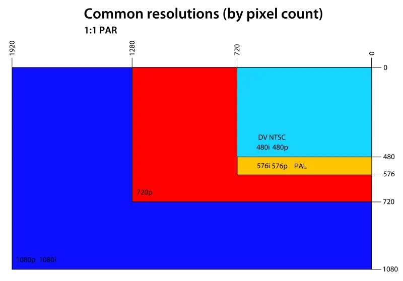 Comparación visual de la resolución común de vídeo con la de alta definición.