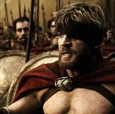 ¡Espartanos, disfruten su desayuno, porque hoy cenaremos en el infierno!... ¡Aquí es dónde peleamos, aquí es dónde morimos! Se nos enseñó a no retirarnos, a no rendirnos, a que la muerte en el campo de batalla es la mayor gloria que se puede lograr en la vida. ¡Espartanos: los mejores soldados que el mundo ha conocido!