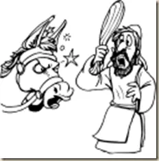Resulta que estaba Balaam muy tranquilo por el camino con su burro, al cual estaba azotando, cuando escucha un voz que lo llama. El que hablaba no era otra mas que el burro que le preguntaba por que estaba azotandolo. Balaam, muy tranquilo (como si los burros hablaran todos los dias) le contesta: Por que te has burlado de mi. Entonces el burro, en un ataque filosofico, le explica como funcionaba su relacion y como Balaam habia herido sus sentimientos. Al final, despues de una larga charla hicieron las paces. (ah.. les explique que era un burro el que hablaba no? si, si... el animal ese de carga!)