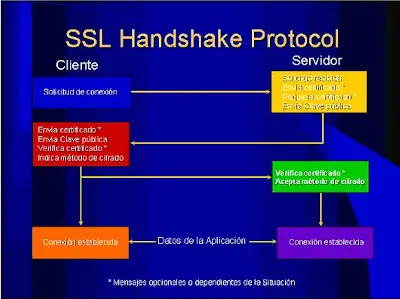 * Primero, el cliente se conecta al servidor comercial protegido por SSL y pide la autenticación. El cliente también envía la lista de los criptosistemas que soporta, clasificada en orden descendente por la longitud de la clave.