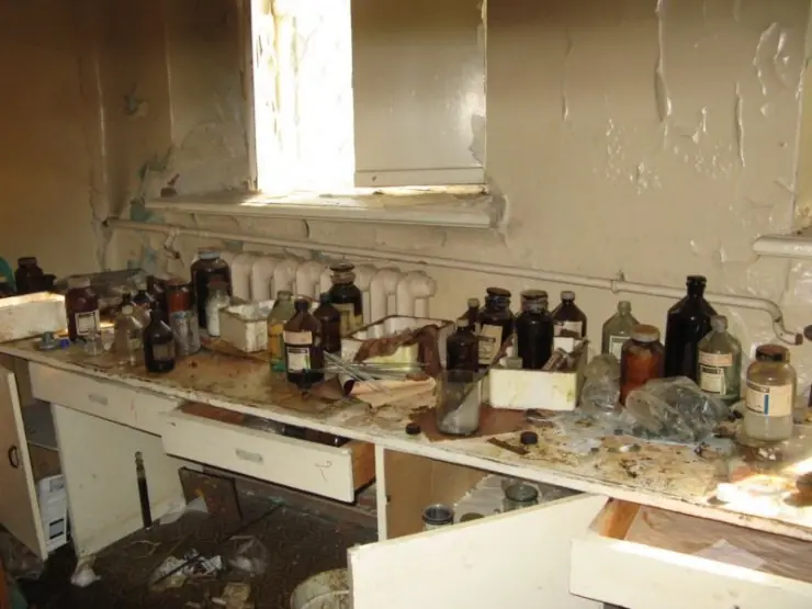 Antiguos laboratorios abandonados en la isla de Vozrozhdenie
