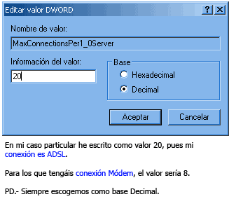 El nombre del primer valor es 'MaxConnectionsPerServer' (significa la conexión máxima por cada servidor HTTP), y el segundo valor es 'MaxConnectionsPer1_0Server' (es lo mismo, varía en el nombre significativamente).