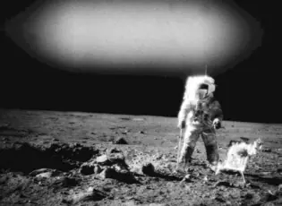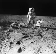 - Apolo 11: Estas pequeñas cosas son gigantescas, son enormes... No, no, lo de ahora era una desfiguración óptica del terreno. ¡Oh, Dios, nadie lo va a creer!