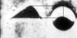 La imagen anterior, sin embargo, es una copia de mala calidad del original. Si observamos una versión de mayor resolución de la misma imagen, comprobaremos que se trata más bien de una mancha, que ocupa una pequeña porción de la fotografía, que es mucho mayor que el fragmento mostrado aquí: