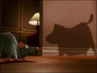 6. En Ratatouille, el ratón chef "Remy" se ve sobresaltado al cruzarse con una sombra amenazante. Entonces era simplemente una sombra de perro. Hoy ya sabemos que la silueta en la pared corresponde a "Dug", el perro de Up.