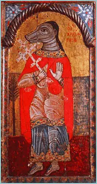 Santo Cinocéfalo: Durante la cristiandad medieval, San Cristóbal el mártir del siglo III, fue un personaje popular de este periodo por ser un Cinocéfalo que provenía de tribus asiáticas en tierras escitas. Otros relatos lo muestran como un hombre común, hijo de un rey cananeo, por el nombre de este pueblo se lo puede asociar a esta etnia. Una fabula de la iglesia ortodoxa decía que este Santo era un hombre atractivo y por ello recibía insinuaciones por parte de mujeres de cualquier edad, Dios para liberarlo de este asedio cambio su cabeza por la de un perro.