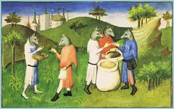El autor francés Jean de Mandeville del siglo XIV, habla en su texto “el libro de las maravillas” sobre una tierra grande llamada Nacamerán cuyos habitantes tiene cabeza de perro y cuerpo de persona. Estos individuos son inteligentes excepto por que su dios es un buey, y portan su símbolo en la frente. La única ropa que visten es un pedazo de tela que los cubre desde su cintura hasta las rodillas. Los Cinocéfalos son altos y fuertes guerreros, en tiempos de guerra portan una adarga en el cuello que protege el cuerpo, usan una lanza para someter a sus enemigos a quienes posteriormente se comen.