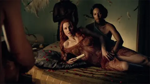 Xena -Lucy Lawless- que se pasó la segunda mitad de los 90 calentando a las lesbianas adolescentes de medio mundo y a algún despistado, aparece en esta serie convertida en una ‘milfona’ esposa del amo de los gladiadores y sedienta de sexo con los gladiadores.