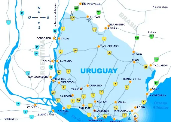 por si alguien quiere venir a vacacionar a uruguay les dejo su mapa de rutas: