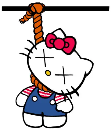 Esta es la otra historia de tan entrañable personaje, desde luego no esta documentada, por eso entra en la categoría de leyenda urbana, lo que si es cierto es la escasez de datos acerca de la biografía de la diseñadora y su extraña desaparición de la empresa un año después. Otro dato es que varios satánicos llevan tatuado a Kitty en la piel e incluso circulan videos de misas negras con la imagen de la gatita que algunos llaman “la hija del demonio”