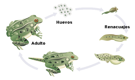 Una de las cosas más interesante sobre las ranas es como se cambian de un pequeño huevo para llegar a ser adultos. Los huevos de las ranas se desarrollan en renacuajos que respiran a través de branquias. Esas pequeñas criaturas comen alga en el agua en donde nacieron. Cuando nacen, los renacuajos tienen una cola y una cabeza. Poco a poco, ellos desarrollan piernas. En poco tiempo, llegan a ser adultos con cuatro piernas, sin cola, que comen carne y respiran por los pulmones. La mayoría de los anfibios de Centroamérica nacen de sus huevos en la estación seca cuando hay más insectos que comer.