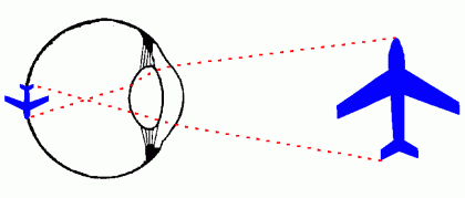 Este ángulo abarca más distancia cuanto más lejos estemos del ojo. Es decir, el detalle más pequeño que podemos percibir tiene que ser más grande cuanto más lejos se encuentre.