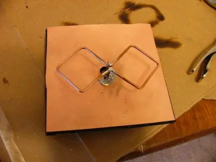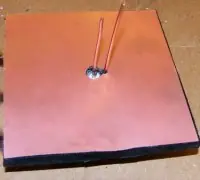 Pegamos el conector "N" a la pieza de plastico con las patitas segun la foto, y en la otra cara le ponemos una hoja de cobre o sino un dectangulo similar de circuito impreso virgen que servira como reflector.